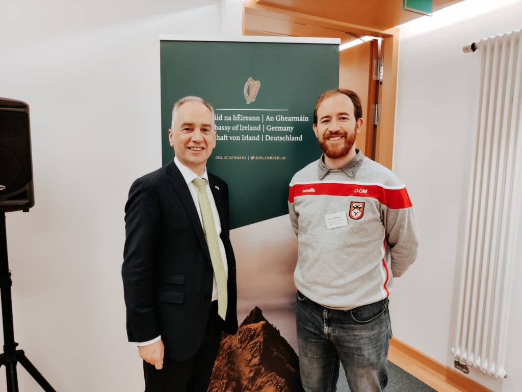 Meeting the Irish Ambassador to Germany, Dr. Nicholas O’Brien, as chairperson of the Cologne Celtics GAA Club in October 2022.